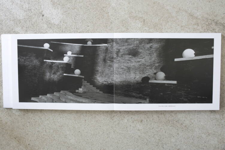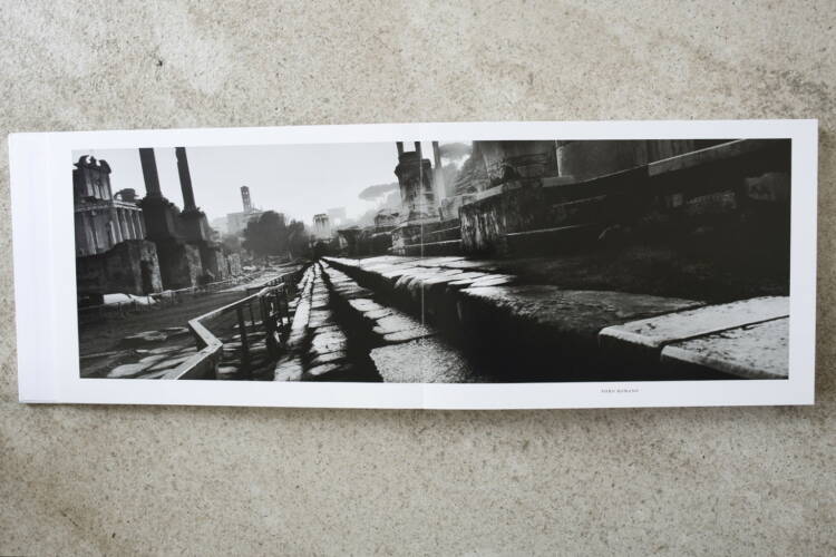 Theatre of time by Czech photographer Josef Koudelka, 24 panoramic black and white, duotone photographs of Rome is a limited edition of unique aesthetics and technical excellence. Koudelka, the one of the most famous photographer of the agency Magnum, photographed landscapes of ancient Rome, and shows us a city desolate, haunting and simultaneously beautiful and mysterious.