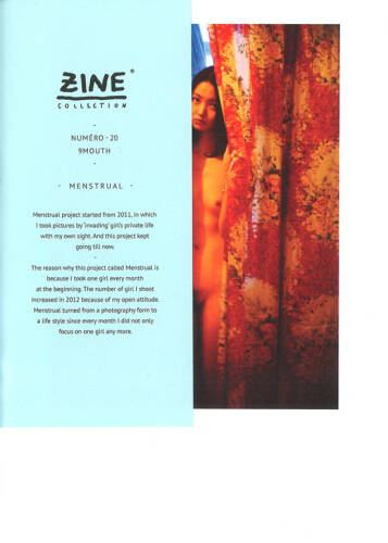 "Menstrual project started from 2011, in which I took pictures by 'invading' girl's private life with my own sight. And this project kept going till now.