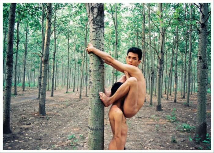 野生 is a large format collection of unbound posters (book size: posters folded to 28 x 40 cm, open size 56 x 40 cm) printed on strong paper, held together by a banderole. The double pages confront vertical formats with half of horizontal formats, vertical confront vertical, or half of horizontal confront another half or horizontal formats, recontextualizing Ren Hang’s work.It is Ren Hang’s biggest and heaviest book up to now.