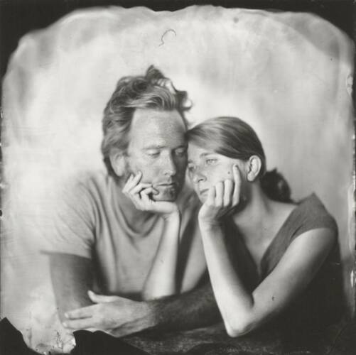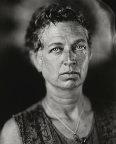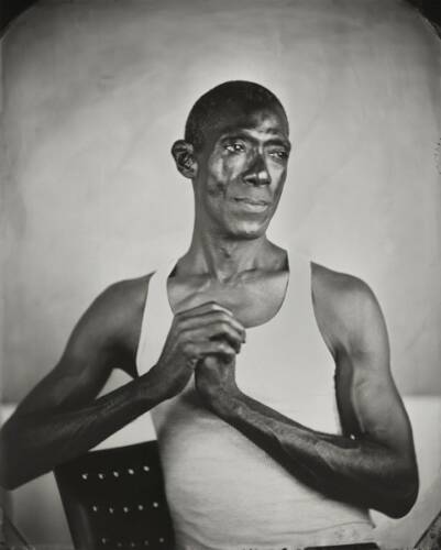 Anderson-Staley mixes and pours the emulsion for each plate on site shortly before a portrait is made. The process of hand-coating each piece leaves behind traces of the maker that are as beautifully and deeply embedded in the final image as the perceived identity of the subject.