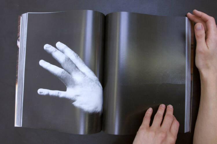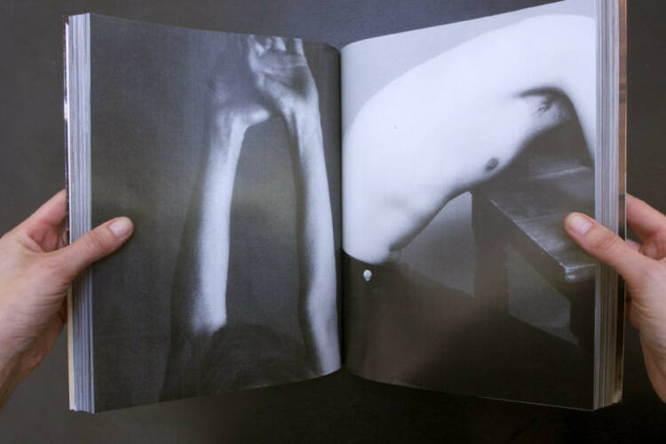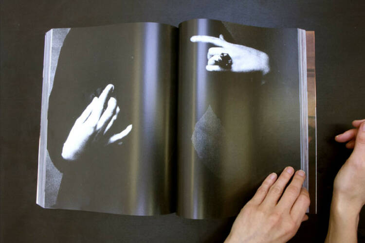 Artist's book by Paul Elliman. In a glossy volume approaching 600 pages, Elliman has collected images from a variety of sources – fashion magazines, glamour photography and pornography – cropping and arranging the clippings in a manner that especially emphasises the presence of hands, along with the many gestures of which they are capable. Also prevalent in the spectrum of clothed, semi-nude and nude human forms are limbs, feet, torsos and erogenous zones. Without any text or explanation, the series takes on a mesmerising aspect wherein the action of flipping through the pages becomes a kind of meditative contemplation of the fragmented human body.