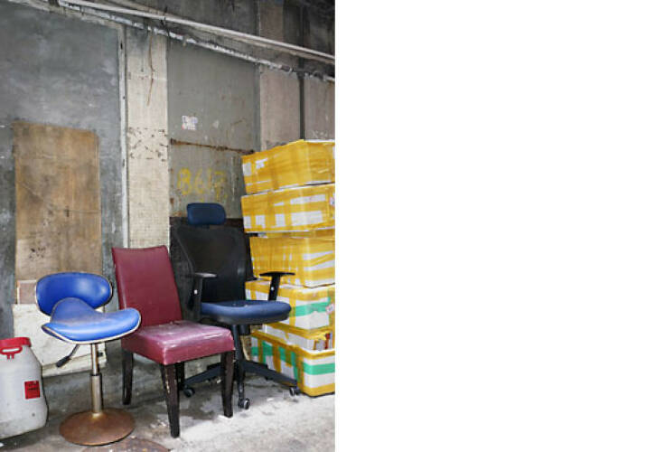 Street chairs. Old and new, whole, broken, rebuilt and repaired. Together with alienated crates, cartons, wooden blocks and jerry cans they form peculiar roadside seating ensembles for the short relaxation or a little chat in between.