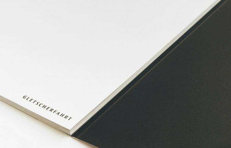 Gletscherfahrt, Ester Vonplon’s second book with b.frank books, is a collaboration with the Swiss musician Stephan Eicher. As in her first book cudesch da visitas, the cineastic character of the black and white photographs captures the viewer’s imagination. Vonplon photographed the Swiss glaciers for two years. During the summer months these glaciers are covered by enormous cloth panels to stop the melting process. Vonplon also recorded the sound of the purling Gletschermilch (glacial milk) with a highly sensitive microphone. Stephan Eicher then used these recordings as a starting point to compose a 21-minute audio-collage.