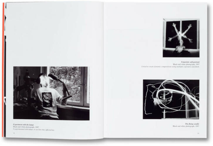 Authoring captions that offer unsparingly honest vignettes to account for each image, Gravlejs's tone is one of utter self-mockery; and yet we are never quite sure of Gravlejs own proximity to the prodigy of Early Works – as a younger self he teases, spoofs, and employs to bite back at society, but also a protagonist assembled from a world of appropriation, manipulation and intervention.
