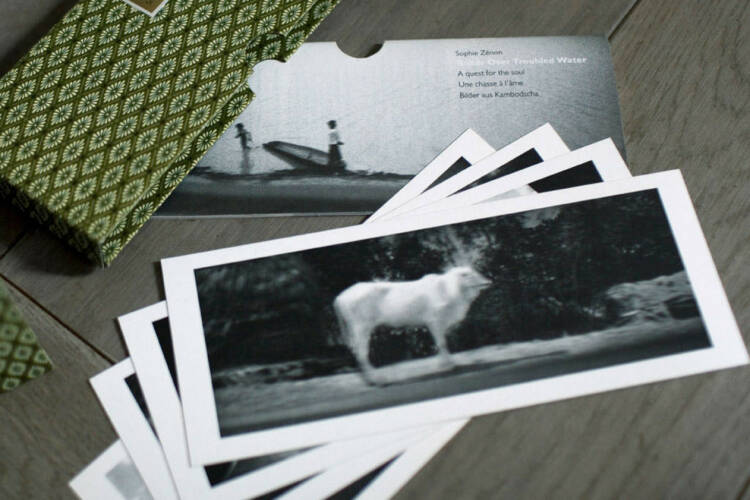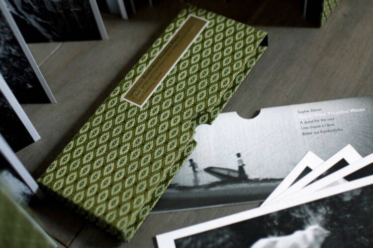 French photographer Sophie Zenon has been travelling across Asia for more than ten years now. Initially, she spent a lot of time in Mongolia, Siberia and the Amur river basin, capturing both the enormous grandiosity of these areas and the population’s harmony with nature and the divine. Zenon then continued her ‘quest for the soul’: between Siem Reap and Kratie, past Phnom Penh to the Gulf of Siam, she allows herself to be carried away on the waters of Tonle Sap and the Mekong. The relationship between water and the landscape is made crystal clear in Zenon’s panoramas. Water is the basis of life, and therefore of thought. Water is omnipresent, forming an inextricable whole with its environment, being its cause. Sophie Zenon’s way of working transcends several fundamental photographic principles. On the one hand, in her landscape photography she places nature at the fore in an almost literary manner by expressing philosophical reflections on the role of elements in nature via forms and shadows. On the other hand, just like Henri Cartier Bresson, she has mastered the art of capturing short-lived and unique moments. One of Zenon’s sources of inspiration is the Finnish master in both genres, Pentti Sammallahti. The book is an exceptional piece of design, printing and binding. The book is a work of art in itself, with its landscape format of 24 x 9 cm, some fifty photos printed in duotone, and its leporello binding. With a separate text book (bilingual English/ French), in a slipcase.