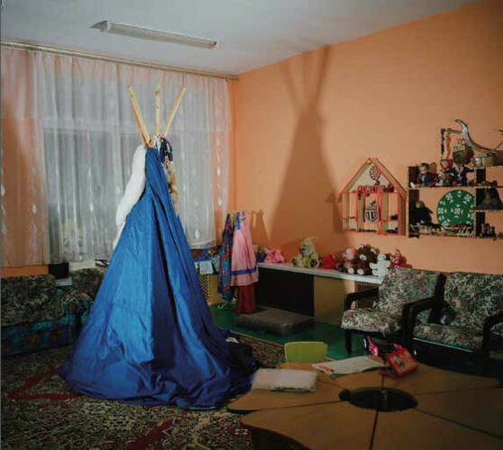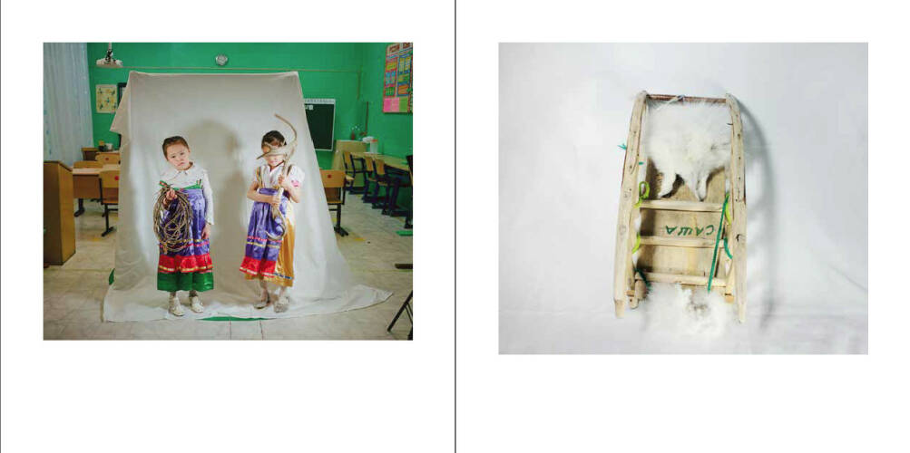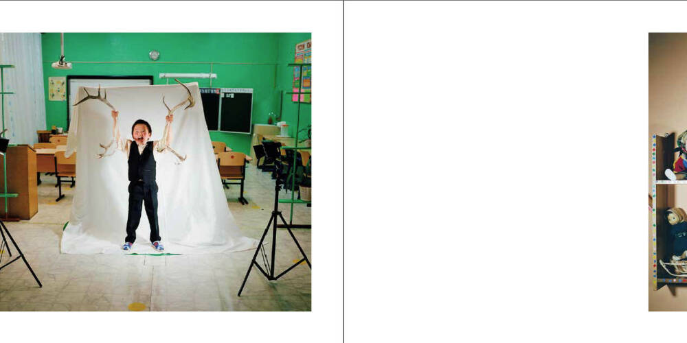 In the suburbs of Vorkuta in the north of the Arctic Circle, there is a boarding school that hosts only children of the Nenets, the nomadic people of the Tundra. In winter the school hosts about 60 children. In summer they live with their families. The photos by the Japanese artist Ikuru Kuwajima show the children as active and enthusiastic participants in his project; the classroom has become a photo studio. The children have brought objects with them that bear witness to their origins and the problems they face in adapting to the world of contemporary Russia. In many of the children’s drawings that Kuwajima has chosen for the back cover of his foldout book, there are still many traditional forms of these ornamental drawings. Ikuru Kuwajima communicates to us the magic and the energy of this distant children’s world; at the same time, he allows us to sense the gradual disappearance of the old ways.