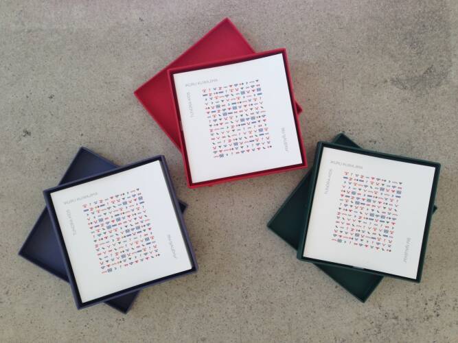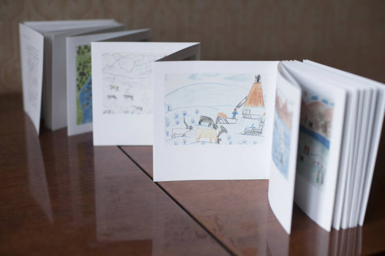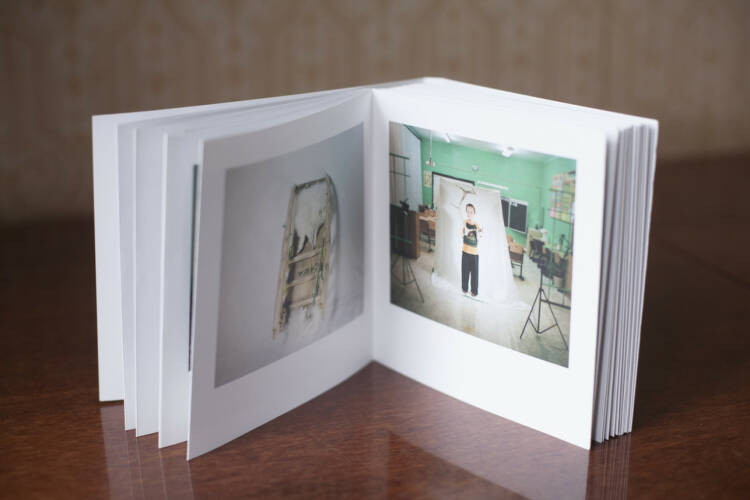 Comments: German, English, Nenets, 16 x 16 cm, foldout (leporello), color photos and children drawings. collector's edition of 25 copies in a handmade box with two signed and numbered fine art prints on Hahnemuehle PhotoRag paper.