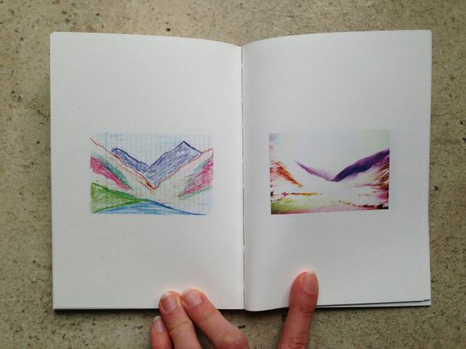 "A few years ago, I was commisioned to photograph a hospital in Jaipur. The institution had completed four decades and its trustees wanted to make a book that commemorated its legacy. The hospital housed a hospice known as Avedna Ashram, which I often visited to make photographs. On one such visit, I found a book with drawings of mountains on a bookshelf. It had no name. I decided to hold on to it." Chandan Gomes