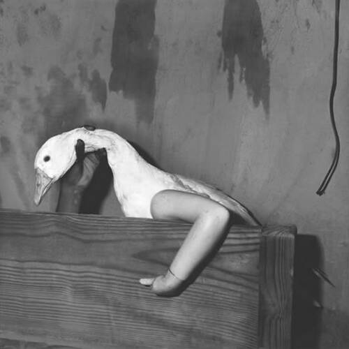 The humans and animals in Ballen’s photographs appear isolated, estranged and lost, yet strangely empowered at the same time. The resulting images are surreal and intriguing, and powerful disturbing psychological studies.