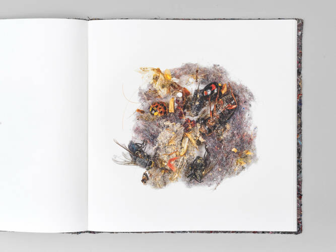 Comments: Collector's Edition with the book in a black box plus print in 30 x 30 cm (3 different motives to choose) and a vacuum cleaner bag. Edition of 20 copies. Price edition 1 - 5 is 165 €, 6 - 10 is 180 €, edition 11-15 is 220 € and for 16-20 € 330. Book: Hardcover wrapped with 2mm textile and flocked ‘Dust’ logo, handmade, 30x30cm (open: 30x60cm), 102 pages (4 pages transparent paper, 98 pages uncoated paper), 45 images. Including a folded poster, 50x70cm, printed on uncoated paper.