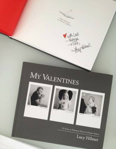 21 Years of Portraits from the Family Album. For more than twenty years, Lucy Hilmer has been mailing her annual family Valentine card to just about everyone her family knew. That's hundreds of people and a whole lot of stamps. Many of the recipients have become avid collectors, sometimes contacting her years later to get specific cards missing from their collections. Others move, get dropped from the list, and then demand to be put back on. Over the years, she has discovered that her Valentine - a classic B&W portrait of her daughter, Annie, in an ever-changing relationship to a rose and some abstracted portion of her black-sweatered dad - is a hot item."Annie cards" are all over the world now, archived in albums, stuck on refrigerator doors, pinned on bulletin boards in all sorts of offices. Finally, this book was published as a kind of time-lapse, stop-motion flower film. And you can send it as one of your Valentine gifts to the people you love!