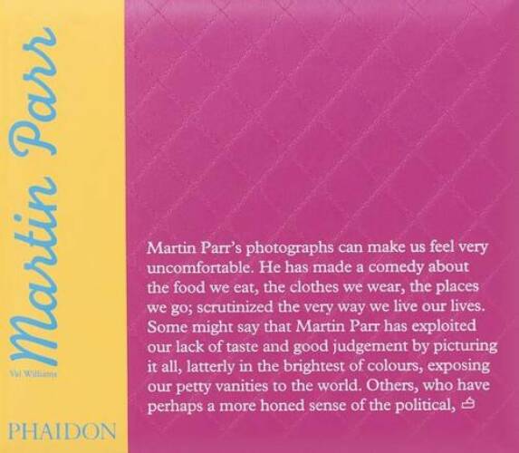 Val Williams charts Parr's development as a photographer, from his early inspirations and outings with his grandfather, through his student days in Manchester and experimentation with documentary and art photography, to his sharply critical observations of the effects on global consumerism on our daily lives. Williams assesses contemporary reactions to his work as well as the social contexts in which the photographs were made. While she worked in close collaboration with Parr, having full access to his archives and based on extensive interviews with him, she retains a critical distance with which to evaluate his work and his public persona as a 'controversial' photographer.