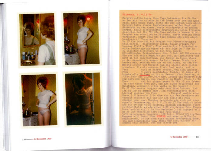 Ein Kölner Geschäftsmann führt akribisch Buch über die Affäre mit seiner Mitarbeiterin "Margret". Als Leser ist man "Günters" Voyeurismus schutzlos ausgeliefert. Mit Hunderten von Photos vor und nach dem Sex, in Kurparks und in neuen, von ihm gekauften Kleidern, nichts bleibt verborgen. Manchmal denkt man, daß er alles für eine Veröffentlichung inszeniert hat. "10 Uhr vormittags M. zu Hause abgeholt. angeblich nach Bad Neuenahr zur Mutter gefahren. In Wirklichkeit nach oben. M. gekocht. Rinderschmorbraten, Kartoffel, Salat. Mittag um 1 Uhr gegessen und bis 1 Uhr 45 Fernsehn gesehen, alsdann ins Bett", notiert er am 29.11.1070. Spießiges und Obszönes reihen sich nahtlos aneinander. Erwähnung findet das "Rotbarschfillet mit Feldsalat und schönen Kartoffeln" sowie "Rückenlage und die Spezialstellung", anderntags wird "Einweihungsfeier begannen trotz Tage". ***** A businessman from Cologne keeps a meticulous record of an affair with his colleague "Margret". The reader is thrust defenselessly into voyeurism. With hundreds of photos before and after sex, in spa gardens and in new clothes he has bought for her.