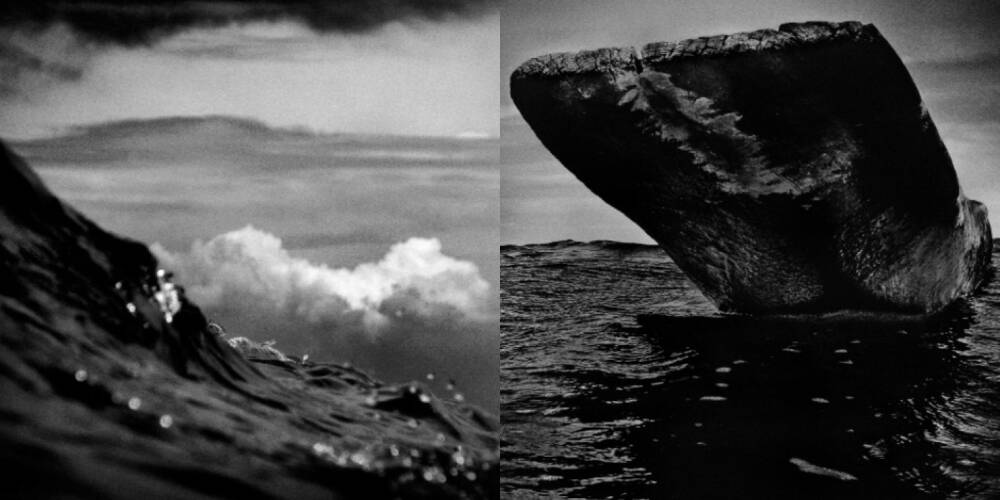 To reproduce this contemplative gaze the photographer opted to work immersed, aiming at sharing sensations such as the absence of balance, vertigo, tension, harmony, continuous movement, the sound of the sea, and the taste of salt. “To photograph in these conditions, vision is not enough. You need to use your whole body, all five senses. The camera is set below the horizon and the waves are mountains in movement. In the water, the equipment incorporates different lenses creating new readings,” affirms Diniz.