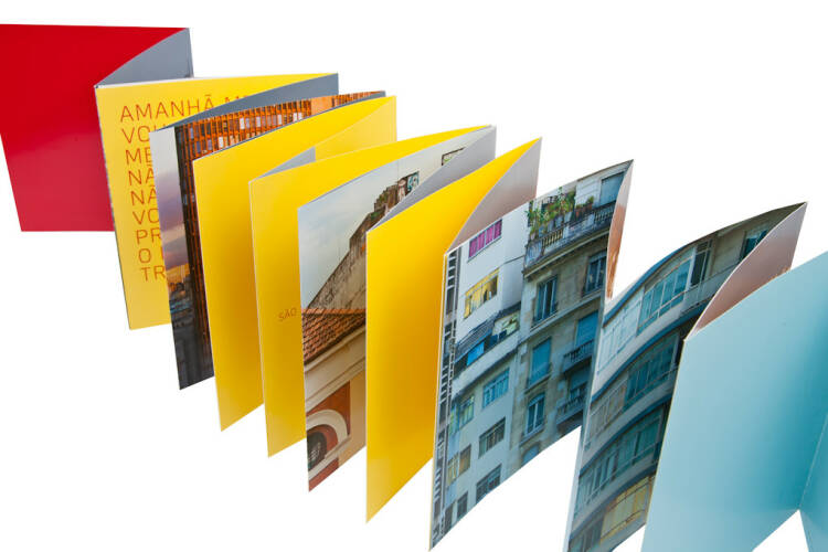 With an unusual graphic design, the folded book can be opened completely, revealing, in 20 meters, five panoramic sequences of São Paulo. The reverse page has segments of text and music about São Paulo chosen by the photographer, from Padre José de Anchieta to Criolo, including Paulo Leminski, Arnaldo Antunes and even Prestes Maia.