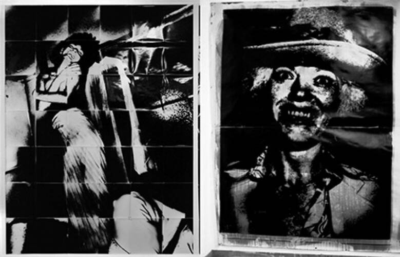 Occasionally I transform the gallery into a darkroom, projecting the images directly onto bromide paper attached to the wall, then applying developer and fixer with a sponge.