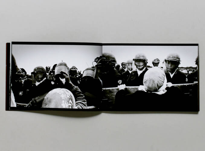 ''In the early 1970s, farmers, workers, and students united under the slogan "We will not surrender our land!". This protest, known as the Narita or Sanrizuka Struggle, led to a series of fierce, bloody battles. a woman in peasant clothing covered all over with mud, in heavy rain, had tied herself to a thick post with steel wire. Riot police were remorselessly tearing her body from the post. forgetting to press my camera shutter, I yelled "Stop it!". Forty three years since have passed, and there is a plot of land that remains intact in the middle of the airport, which shows that the protest has been handed on to the next generation. With such deep attachment to the land and tenacity of ownership, I know the profound desire and great fortitude of human beings.'' - Tenmei Kanoh