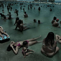 Ramos is the outcome of four summers photographer Julio Bittencourt spent in Rio de Janeiro registering Piscinão de Ramos’s sunbathers. His photographic vision devoid of prejudices and irony accomplish a unique portrait of this unusual place, where people enjoy good times of leisure while simultaneously dealing with issues such as violence and pollution. At the end, an afterword by the photographer Martin Parr comments this photobook’s powerful pictures.