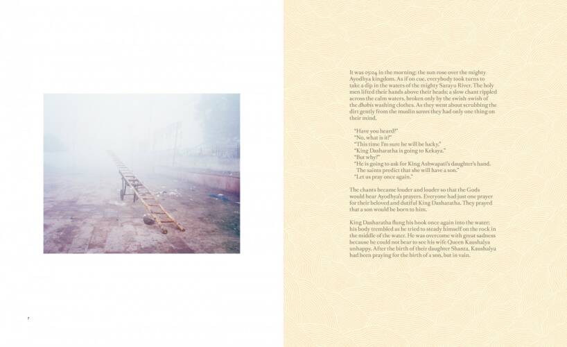 This first book addresses the beginnings: it tells of the youth and education of Rama, son of King Dasharatha, and of Sita, daughter of King Janaka, who do not yet know each other but are destined to meet and fall in love. The Ramayana has been continuously rewritten and reinterpreted through time, and for Yoganathan’s book has been retold by Indian writer Anjali Raghbeer. Yogananthan commissioned Mahalaxmi & Shantanu Das, Indian artists specialising in the tradition of Madhubani painting, to create original illustrations for display alongside his photographic work.