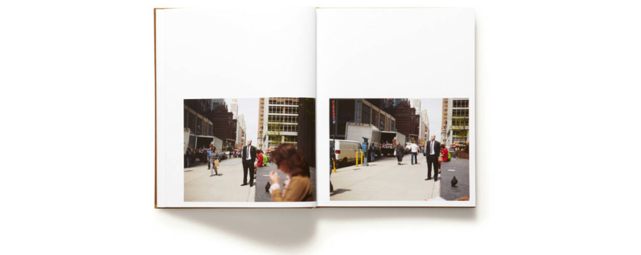 The Present is Paul Graham’s contribution to this legacy. The images in this book come unbidden from the streets of New York, but are not quite what we might expect, for each moment is brought to us with its double – two images taken from the same location, separated only by the briefest fraction of time. We find ourselves in sibling worlds, where a businessman with an eye patch becomes, an instant later, a man with an exaggerated wink; a woman eating a banana walks towards us, and a small focus shift reveals the blind man right behind her.