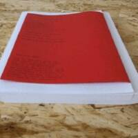 Comments: Softcover in wrapping paper with a red handprinted linocut title block, first edition, 18,5 x 25,5 cm