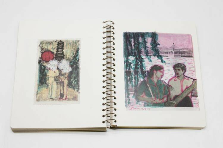 "I found these photographs in antique markets. They were taken in China of the 1970s or 80s. I used collaging or drawing to destroy or carry forward the stories in the photos, with my imagination or restoration about the social news in recent years. Maybe the original photographs recorded real things which happened, but were the new plots through my changes completely fabricated?" —Yanchu Sun
