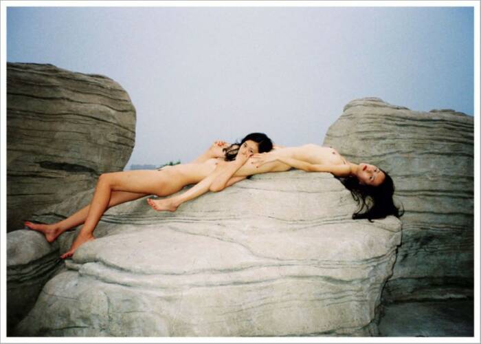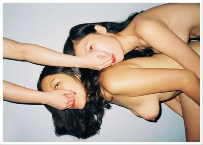 野生 is a large format collection of unbound posters (book size: posters folded to 28 x 40 cm, open size 56 x 40 cm) printed on strong paper, held together by a banderole. The double pages confront vertical formats with half of horizontal formats, vertical confront vertical, or half of horizontal confront another half or horizontal formats, recontextualizing Ren Hang’s work.It is Ren Hang’s biggest and heaviest book up to now.