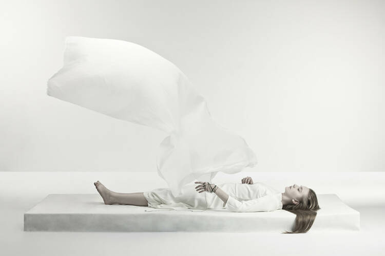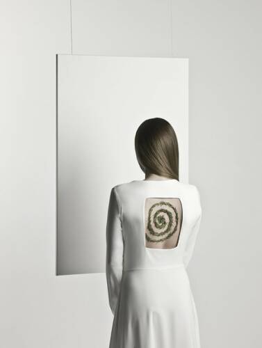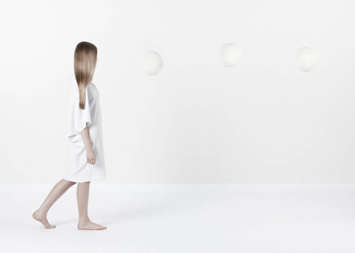 The first project, Return to Eden, is a story about trying to find our identity, about who we are, inside and out. This is also Wysocki’s first studio project. The second cycle of images, In-visibilis, was inspired by a collection of fashion for blind people, and relates to the senses. This is about a world for those who cannot see arranged by those who can. Both cycles make use of a highly ascetic artistic language of isolated events. White predominates. People and objects are clearly visible — but the real theme of the image is obscured. The last project, Exodus 2064, is the most spectacular of the three. This is a vision of the future that has come out of the artist’s experiments with hypnosis.