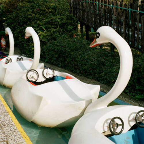 »Die Praterparzellen sind wie organische Zellen, sie verändern und verschieben sich ständig«, sagt Robert. Und so gibt es in den 78 Aufnahmen auch einiges zu entdecken: Ein Sammelsurium aus exotischen Plastiktieren, verlassenen Fahrgeschäften und bunten Monstern wird von den Besuchern im Sommer wie im Winter erkundet und zeigt den Prater als einen Vergnügungspark, der gerade nicht durch modernen Hightech definiert ist. Er hat sich seine Einzigartigkeit vor allem dadurch bewahrt, dass hier viele Attraktionen und Buden einfach länger stehen bleiben dürfen als anderswo. Aber das ist nur eine Erklärung für die besondere Atmosphäre des Wiener Praters!