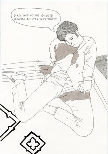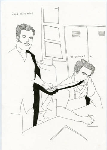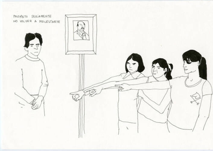 She made drawings of 200 different phorographs and added dialoge to them, as if they were comic strips. The dialogues have been composed out of the lyrics of Mexican ranchera songs, which in the name of love and passion celebrate actions and reactions of a rather untender nature. The three elements have combined to create a book that invites us to reexamine the content we are exposed to and to identify the violence concealed beneath accepted codes. This is a sort of reflection that is needed, especially in Mexican society, so that the limits of the acceptable can be analyzed objetively and the real impact understood.