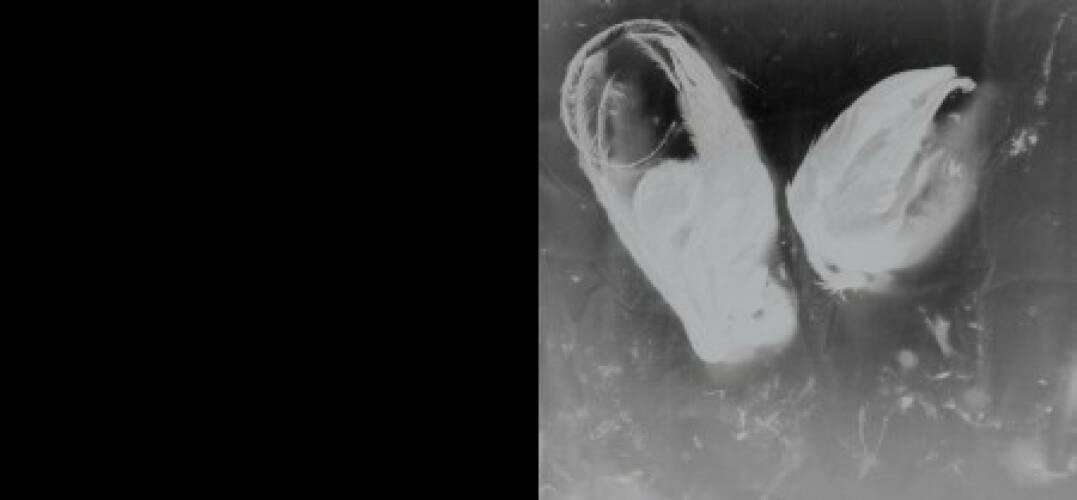 Photography is taken here to an extreme, through the use of silver ink on black cardboard for the printing. This gives the images the look of negatives, while at the same time underlining the intrinsic strangeness of the photographs.