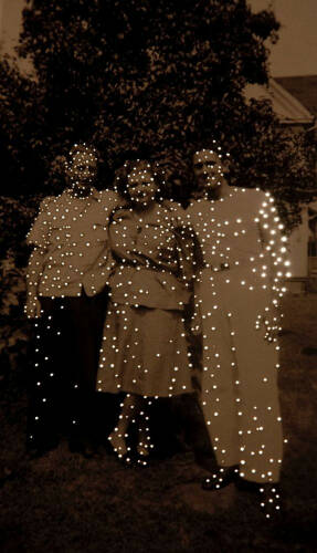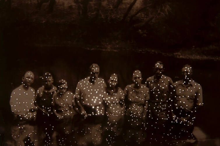 By employing the tools of photography, I re-use light by allowing it to shine through the holes in the images. In a somewhat playful and yet literal manner, I return the subject of the photographs back to the light, while simultaneously bringing them forward. The images are permanently altered, they are lost and re-born – hence the title, Dare Alla Luce, an Italian term meaning “to bring to the light,” in reference to birth. The photographs present new meanings, despite the mysteries they harbor.