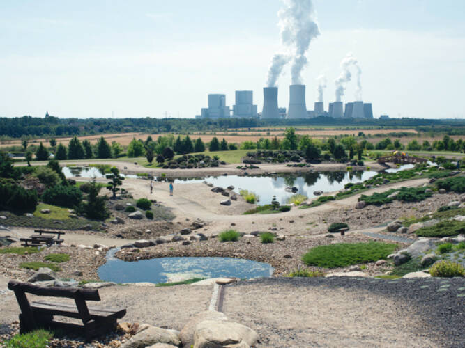 Under towering chimneys in a sprawling industrial landscape, a group of lakes, pristine paths, and viewing benches are improbably sited. In among them, visiting tourists are reduced to mere specks, backs turned away from us, as they stare fixedly at the smoke shafts in the middle distance, billowing into the summer sky. This is Lusatia, soon to be Europe’s largest artificial lake district. Sited at the Eastern edge of Germany, the region has held a reputation as one of the most polluted in the country. For more than a century, forests were felled, and villages emptied to make way for vast lignite mines, which gradually decimated the area. But beginning in the 1970s and with renewed vigour after reunification, old pits were flooded to create artificial lakes. Now, there are around ten in use, with more on the way, and a fledgling tourism trade has begun re-cultiating the land. Freya Najade became captivated by Lustatia’s quasi-industrial feel, and the measured, yet determined pace of change. Named Jazorina for the local Lower Sorbian word for »land of lakes,« her photographs are silent, studied things, beautifully colored, and flushed with light. Capturing the dense layers of the region’s history, they seem to speculate on what went before, and what might come after. (Lucy Davies)