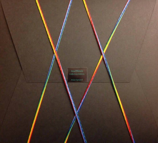 Comments: Half-cloth hard cover, 23 x 21 mm, language: German / English, signed and numbered book + one signed and numbered print, Fine Art Baryta Paper 18,5 x 23,5 cm, housed in a handmade folder, Print out of four motifs - each in edition of 25, print option I / III / IV