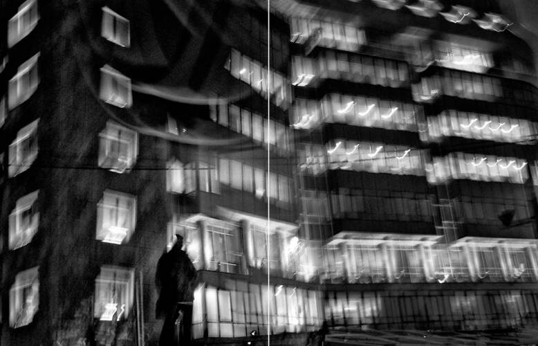 Yet, in this dead of night a wide awake artist has produced a series of powerful night portraits of the sleeping Macedonian capital. His new art project has an elliptic and quite effective title: "At 3 a.m.". This title is not (just) indicative of the time of night when the photographs of Skopje may have been taken. This temporal sequence is also a parameter of the spiritual state and the time we live in, which the author of this project has chosen (or it has chosen him) for his artistic chronotope.