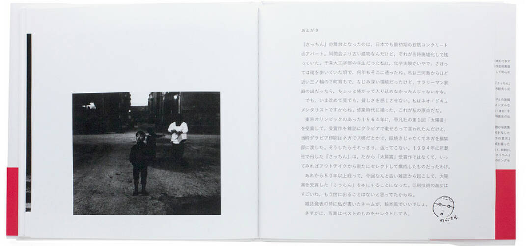 More than 50 years later, the 2017 photobook Sachin, published by Kawade and designed by Satoshi Machiguchi, features a new selection based on the actual, original photos for which Araki received the Taiyo Award at the very beginning of his career.