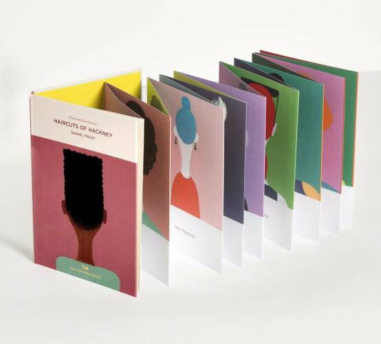 Haircuts of Hackney is the newest title in our collectable series 'Illustrated East London'. This quirky and colourful book folds out to show 35 paintings of the backs of Hackney heads. DanielFrost, a local artist, has created a playful visual encyclopaedia of the haircuts you'll find in East London, the epicentre of self-expression and coiffed confidence. Using this book you will be able to identify and spot some of East London's finest examples of the 'Mun' (man bun), the Kingsland Basin, Queensbridge Quiff, the legendary Hoxton Fin and more.