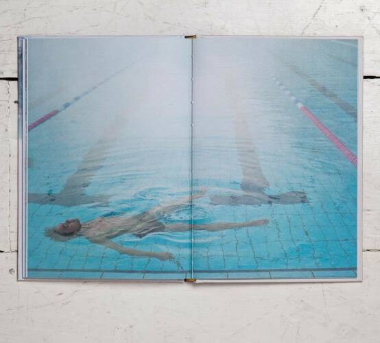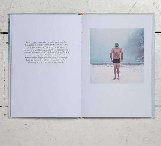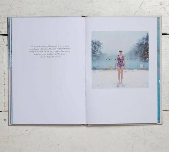 East London Swimmers comprises more than 50 colour photographs of swimmers dressed for normal life and in their swimming gear. The images, all taken at the London Fields Lido, are combined with telling personal quotes and together they reveal the secret life of Hackney swimmers who brave all conditions to escape city life.