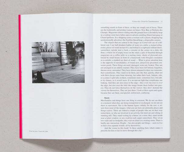 In “Dialogues”, the German artist Stephanie Kiwitt, who resides in Brussels, has for the first time compiled various works from recent years that take the form of publications and exhibition projects in a joint context. New junctures arise from image to image, never before seen in this way—each new image is a leap through time and space, from Belgium to Marseille, Prague to Ghent … Or perhaps these encounters are actually collisions rather than new junctures? Sections, cutouts, images extending beyond their edges, leading away, leading somewhere else—perhaps into a different picture? Kiwitt succeeds, in a unique way, at situating her photographs, series, and books along this threshold where a description opens and facilitates something rather than formulating and concluding it. This opening does not evolve without help, for it must be initiated—through images arising not randomly and also not incidentally, but which on the other hand don’t pretend that they have always known best, images with an inherent sense of restraint, through which the images foster a dialogue, both between the images themselves and with the beholder.