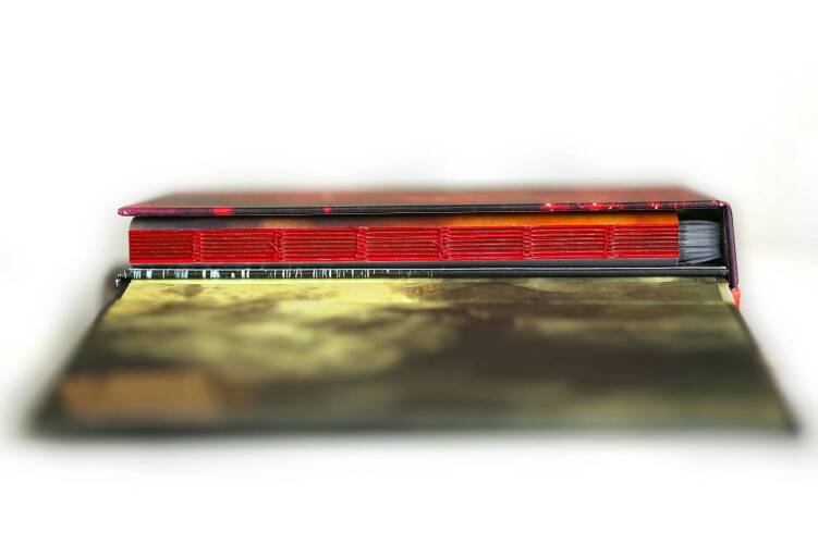 Comments: new book in original plastic foil. first edition of 500 copies. designed by -SYB- . One publication consisting of three interwoven volumes opening in three directions. Dimensions: 18 x 15 cm, Inside Paper: 120 grams uncoated printed in UV-Offset. Case: Books hand sewn and bound in hard case with Wibalin cover. Binding: Three books and case hand bound. Naked spines with red thread and red glue detail.