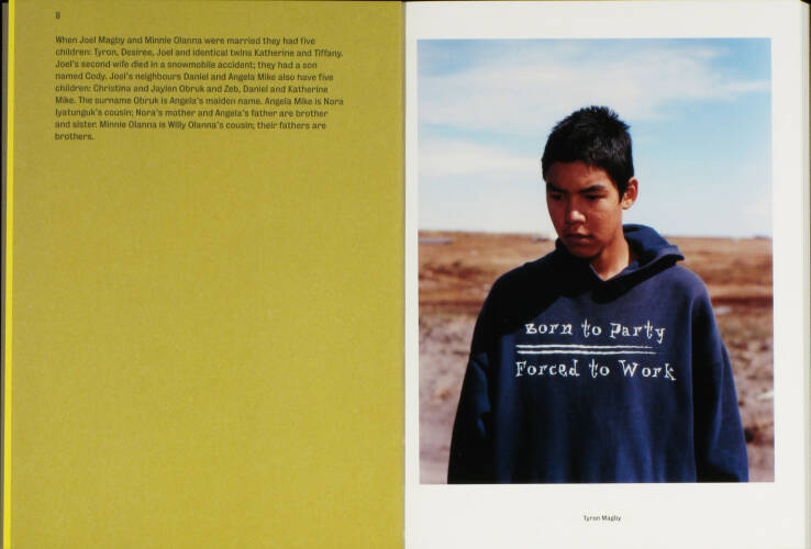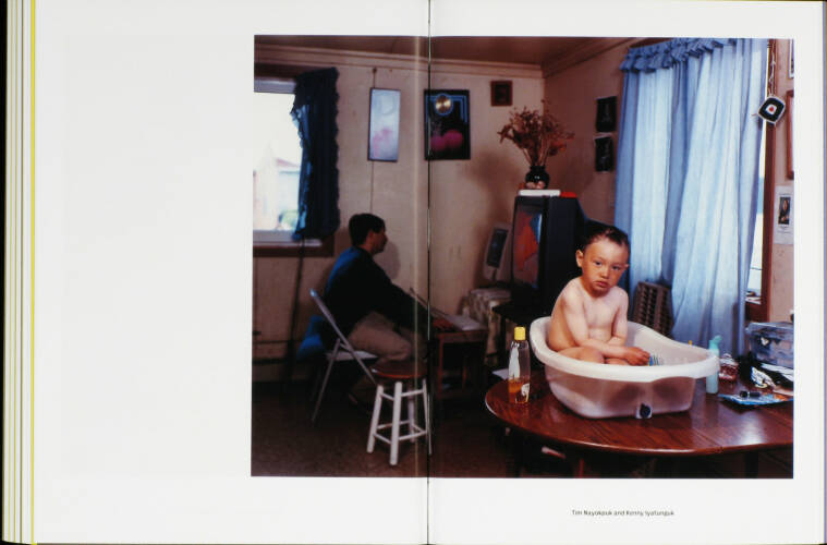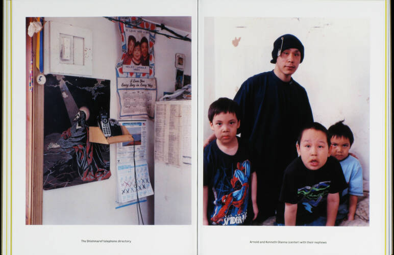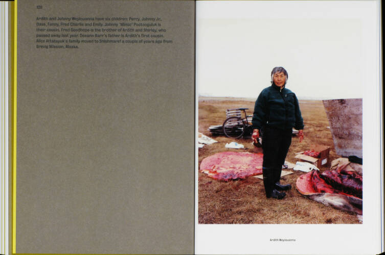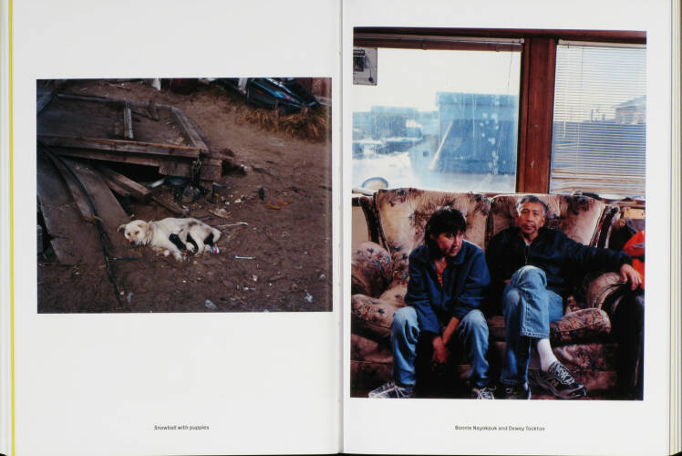 Shishmaref is disappearing. The village on an island off the coast of Alaska is slowly but surely being swallowed up by the sea. Global warming is causing the island's protective permafrost layer to melt; the Chukchi Sea is freezing later in the season, leaving ravaging waves free to batter the island. It is estimated that the community of 600 Inupiaq Eskimos will have to leave their native land before 2020.Photographer Dana Lixenberg stayed in Shishmaref for several weeks during the winter and summer of 2007. She explored the intricate relationship between the inhabitants and the rough, bleak and beautiful landscape that surrounds them. Using her 4x5-inch field camera makes the act of photographing more formal than hand-held photography, resulting in an intimate collaboration between the photographer and her subjects and in carefully composed still-lives. By combining portraiture, details of interiors, village tableaux, sea- and landscapes, Lixenberg creates a nuanced and complex portrait of this close-knit community, a community balancing between a past rooted in tradition and an uncertain future.