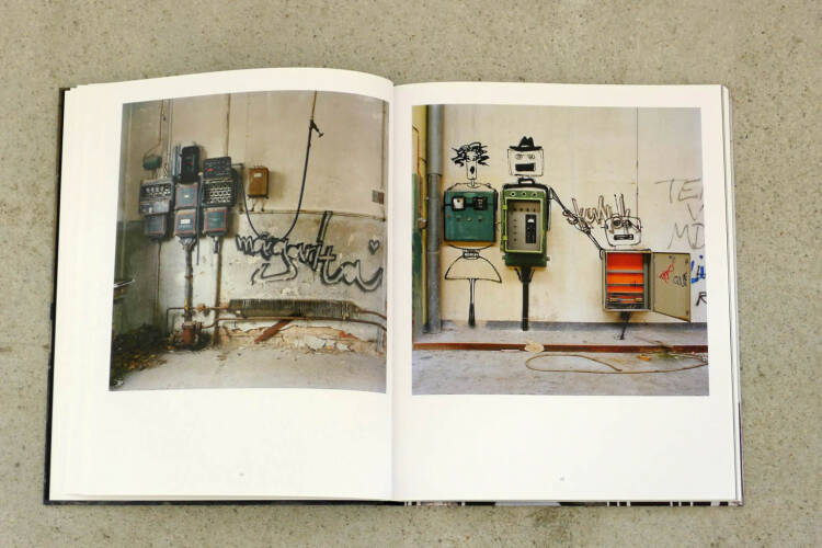 Graffiti artists, actually interested in maximum public attention, have turned the sealed off plant into their playground. Between ruins, collapsed walls, pipes, boilers and left behind machines they have attached their tags and have let a new staff move in. The painted figures interact with the architecture and the left behind objects and comment them – funny, melancholic and obscene. The anonymous graffiti artists, members of the postindustrial generation, use the vacancy and the decay in order to send their messages – behind closed doors!