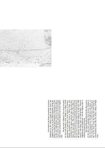 "I travelled to the Pamir mountain sof eastern Tajikistan in the winter, going up and down the rugged road by car in the high mountains along the Panj river that formed hundres of kilometers of the border with Afgahnistan, which was literally within a stone's throw for many many hours. From this Tajik side, i kept seeing the thin endless trail of the Afghan side. (...)" - Ikuru Kuwajima