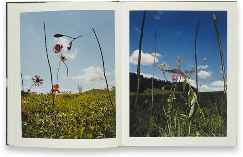 Blumen is the second volume of Forest and Fields and moves away from the figure. Schorr decided instead to look for or build arrangements in the landscapes and domestic and commercial settings of her much investigated town. If people appear in Blumen, they are merely props in an examination of how objects and nature create dialogues within the communities they encompass. Flowers are uprooted so as to become performers in the landscape; signage, plums, chairs and a plaster fawn are some of the shapes of things moved and combined to further detail the daily life of the townspeople of Schwabish Gmund.