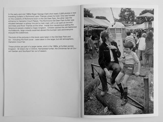 "I took the photos at two funfairs in Richmond upon Thames over 30 years ago in the first half of the 1980s", writes Roger Clark, the broadcaster, writer and photographer, "Cecil Beaton once said getting a new camera was like getting a new pair of eyes. That was true in the 1980s when I abandoned my medium format Rolleiflexes taking 6 x 6 cm film and turned to 35 mm. I bought an Olympus OM SLR and a tiny carbon fibre Olympus XA that was ideal for candid shots. These small cameras loosened up my work as I embarked on shooting thousands of human interest pictures – candids and environmental portraits."