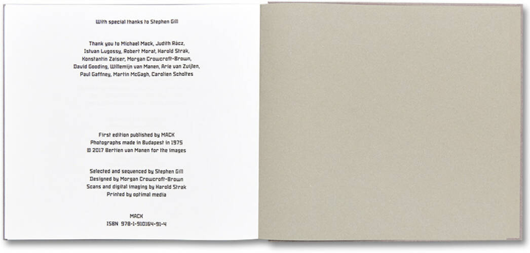 In December 1975 Dutch photographer Bertien van Manen made a series of black-and-white photographs capturing daily life in metropolitan Hungary. I will be Wolf brings together many of these beautiful and never-before-seen images with the editorial direction of renowned British photographer Stephen Gill. Her snapshots of commuters, grocers, chemists, café workers, and street vendors contain all the hallmarks of a bygone era, before the grip of globalisation was able to make its mark on the country. Imbued with an air of ambivalent nostalgia, the book takes its title from the poem Grief by the 20th century Hungarian poet József Attila.