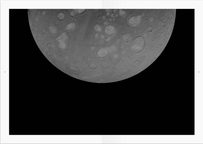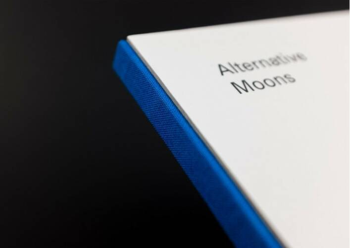 The moon – always source of inspiration and imagination throughout history of wo*mankind. Setting off on the imaginative journey through fictitious space by browsing the pages of the photo book, the viewer is confronted with a surprising fact on the very last page – turning the reception of the whole book upside down. That last page is the crucial point, where the mystery of the moons’ origin is revealed. One realizes: what you see is not what you look at. You are welcome to join the space trip, feel free to discover formerly unseen images of mysterious moons from an unknown galaxy, as the dawn of reality is catching up behind the scenes.