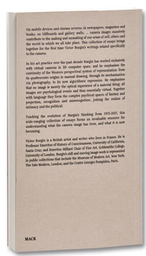 This collection brings together for the first time Victor Burgin’s writings related specifically to the camera, following the shifts and nuances in his thinking over nearly five decades. Moreover, it allows us to chart the evolution of what the camera was and is, and how its affects are to be understood.