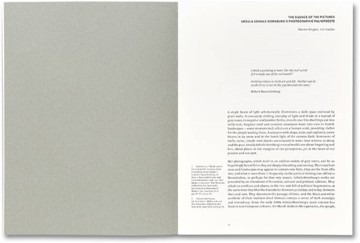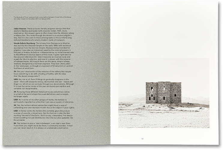 Many of Schulz-Dornburg’s projects derive from a relatively confined geographic location, encompassing ancient civilizations alongside areas of modern strategic importance. Historically referred to as both a gateway and a cross roads, or the ‘land in-between’, the area was often defined not by its content but by what lies on either side, between Europe and Asia, east and west, old and new. Over a thirty-year period, Schulz-Dornburg travelled to this region, visiting Armenia, Georgia, Iran, Iraq, Saudi Arabia and Yemen. Documenting ruins of the now abandoned Ottoman railway project in Saudi Arabia, decaying Soviet era bus stops in Armenia, and temporary marsh dwellings in Mesopotamia. Most recently, in 2010, she travelled to Syria to photograph the ancient city of Palmyra. Her images now form some of the last visual documentation of the area prior to its recent destruction.