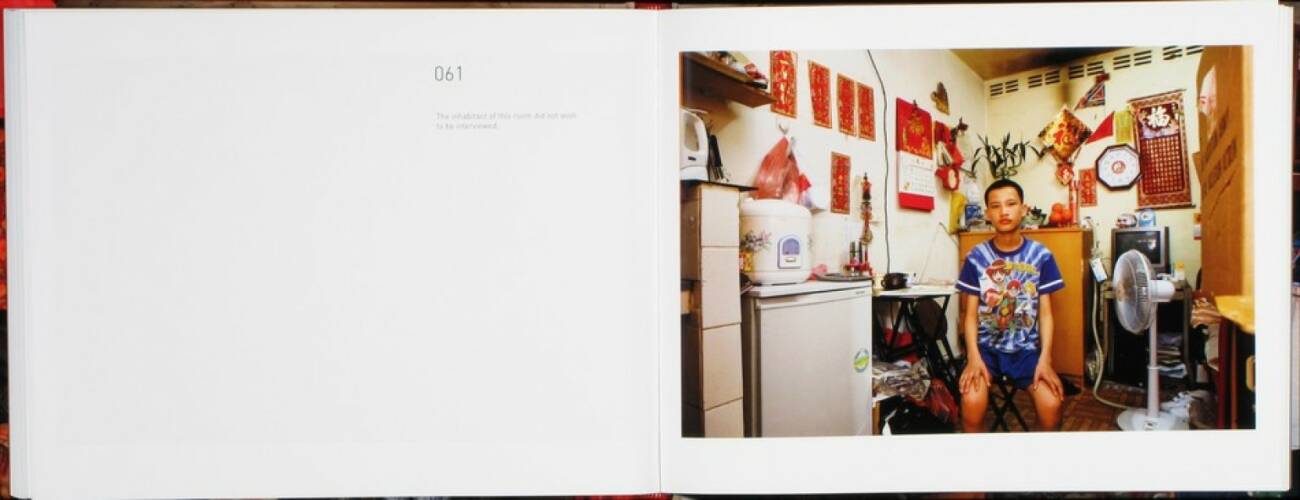 As a way to investigate the social ramifications of living in such dense conditions, with his series ›100 x 100‹ Wolf juxtaposes the anonymity of the exterior residential complexes in ›Architecture of Density‹ with interior portraits of 100 individuals and families surrounded by all their belongings living in public housing consisting of identical 100-square-foot apartments allocated to each family. He obtains the same vantage point for each picture forming a typology that allows the viewer to study how the individuals make the confined spaces their own.